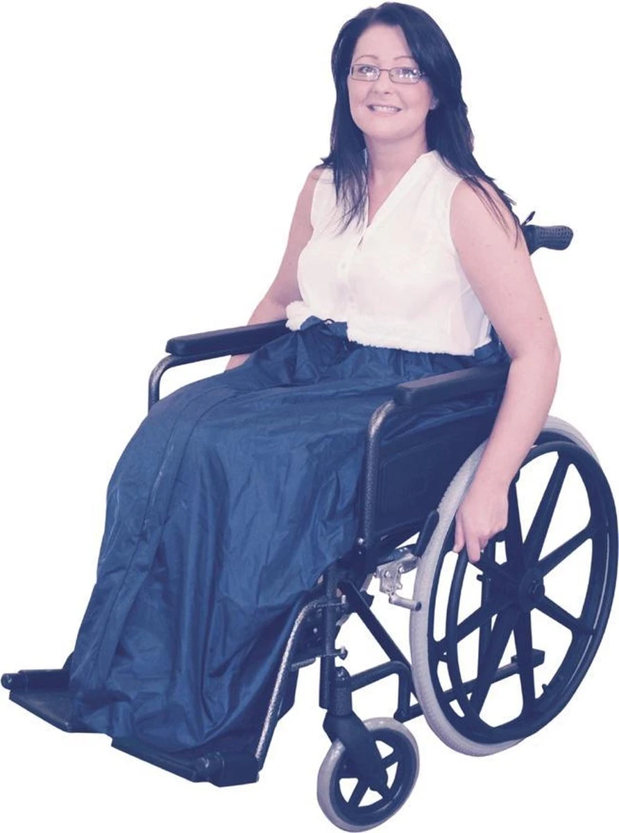 Deze fijne voetenzak is het ideale kledingstuk ter bescherming van uw onderlichaam tegen wind en regen en beschikt over een met fleece gevoerde rugpaneel voor extra comfort en warmte. Door de extra grote rits die met het touw dat aan de bovenkant vastzit eraan vastgezet kan worden, kan de zitzak eenvoudig aan en uit worden gedaan door de gebruiker. Het past vrijwel op alle hand bewogen rolstoelen. De loops kunnen d.m.v. tiewraps aan de handvatten van de rolstoel vastgezet worden indien mogelijk.
