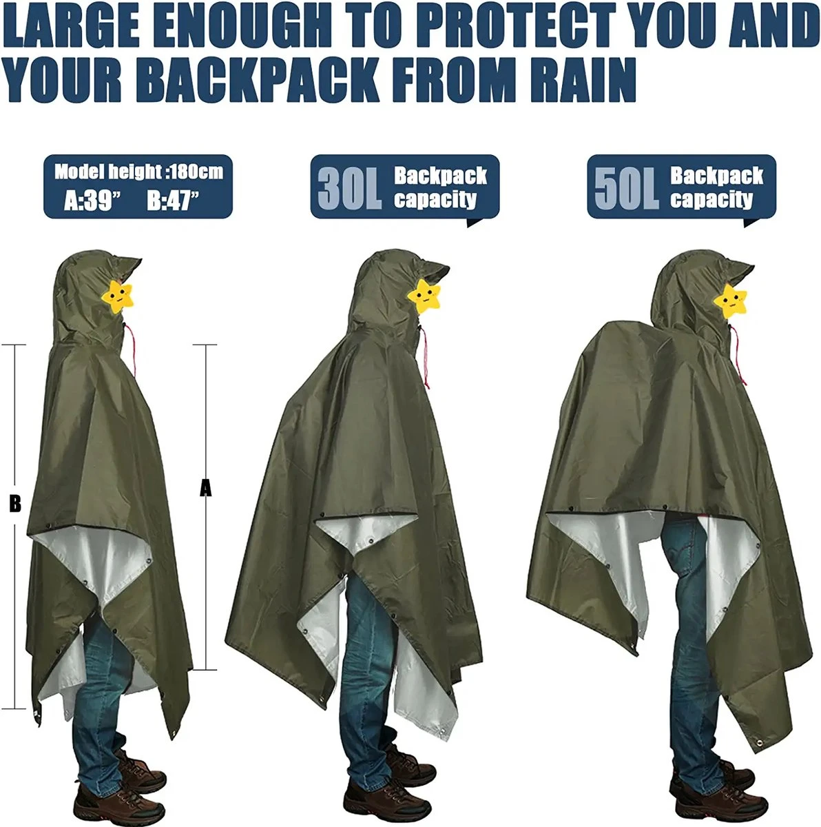 Anyoo Lichte Waterdichte Regenjas Poncho, Herbruikbaar, Ripstop, Ademende Multifunctionele Regenjas Met Capuchon, Opvouwbare Beschermhoes, Onderkant, Ideaal Voor Buiten, Camping, Wandelen, Vissen