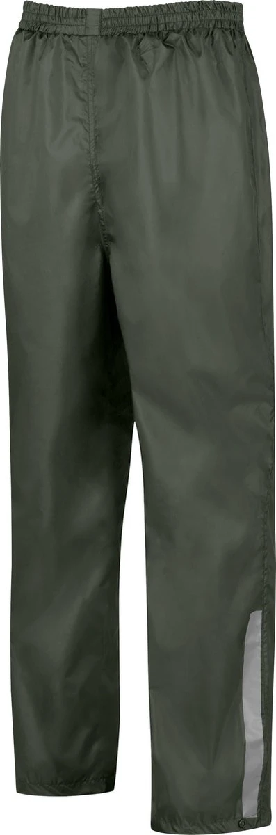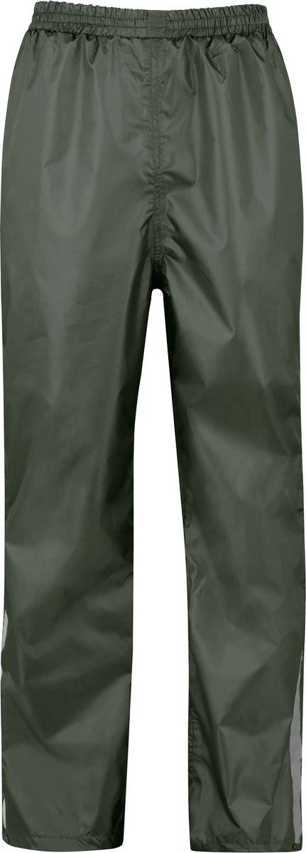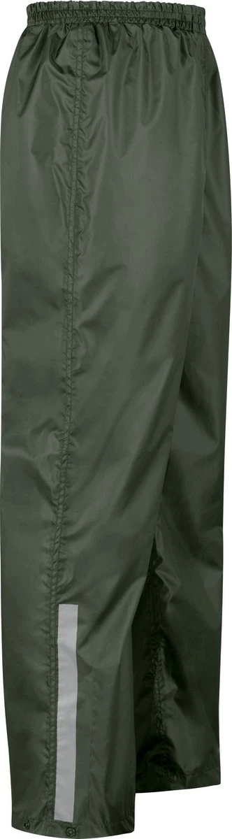 De broekspijpen zijn verstelbaar bij de enkels doormiddel van drukknopen. Door middel van verstelbare koordjes valt de broek goed op de heupen en is deze makkelijk over kleding te dragen. De regenbroek heeft reflecterende details op de onderbenen voor extra zichtbaarheid in het donker.