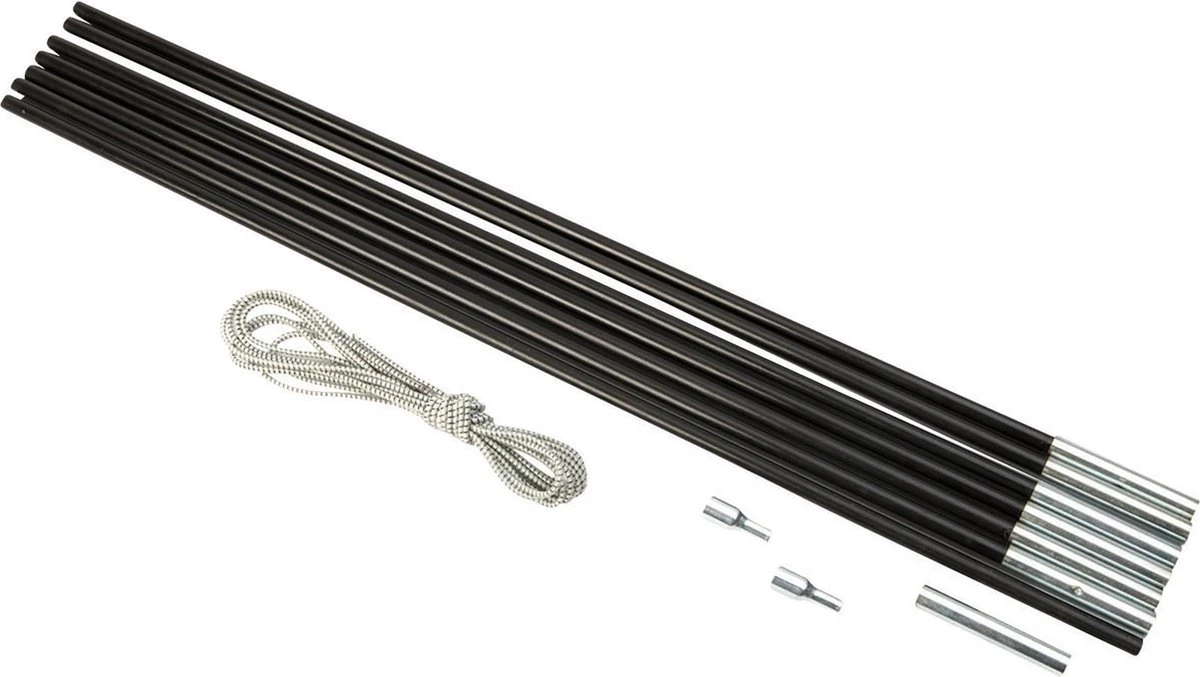 – Fiberglas boogstokken inclusief elastiek en eindstukjes.