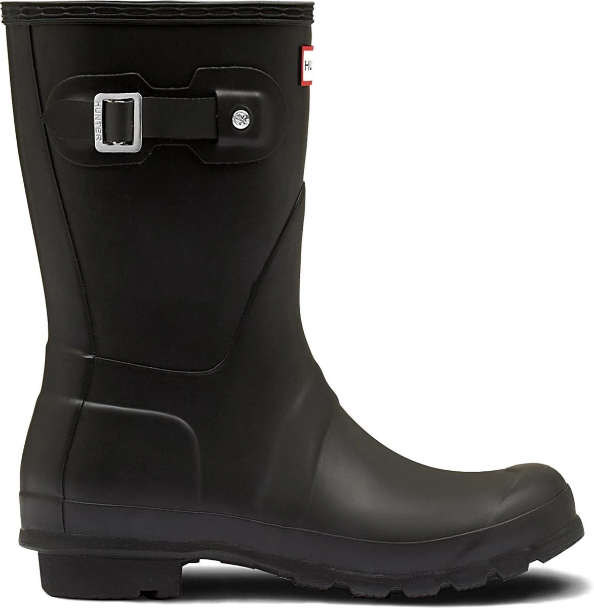 Van het Britse merk Hunter is deze Womens Original Short regenlaars. Een perfecte laars met een hoog comfort en een toffe look. Dit zwarte model is handgemaakt van natuurlijk gevulcaniseerd rubber en heeft een matte finish. Op de voorkant bevindt zich een merkopdruk en de schacht heeft een siergesp op de zijkant. De rubberen buitenzool heeft een gripvast profiel en de laars heeft een textiel binnenvoering met vast voetbed. Met dit exemplaar ben jij klaar voor alle weersinvloeden dit jaar!