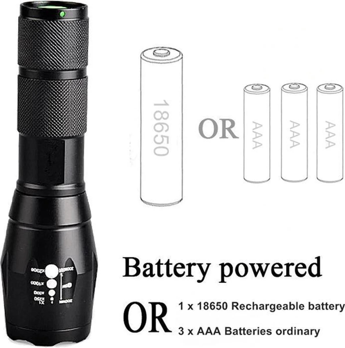 Omdat het van Duurzaam vliegtuig-grade aluminium is gemaakt is het een licht gewicht zaklamp met een hele fijne coting. De batterijen 3x AAA kunnen vervangen worden voor een 1×18650 oplaadbare batterij.