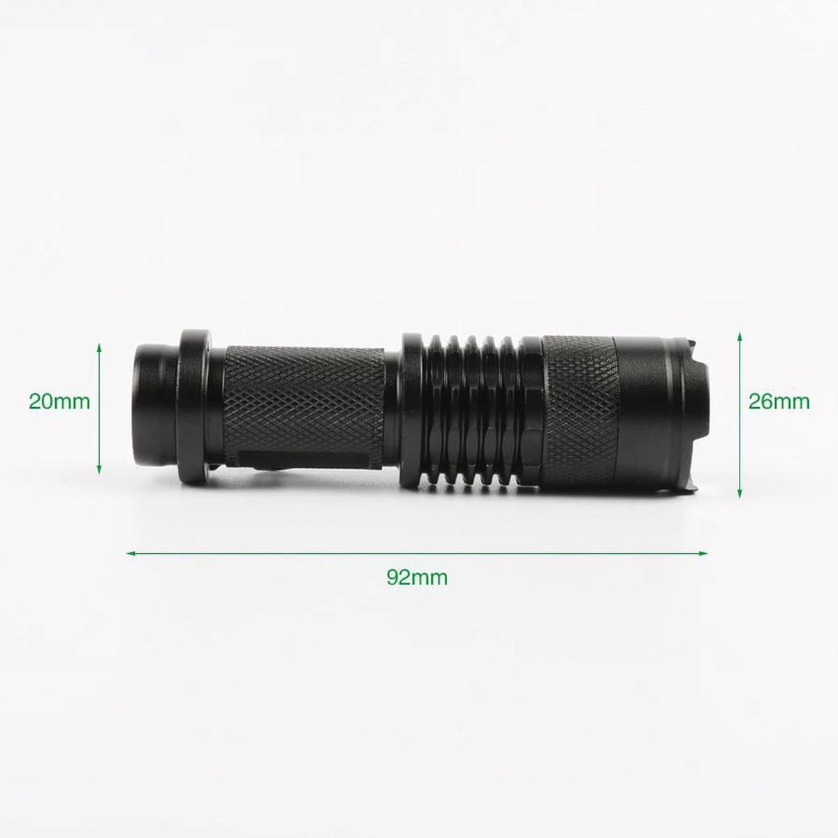 Bron van de mini zaklamp zijn de LED lampen die behalve energiezuinig ook een zeer helder licht produceren met een vermogen van 2000 lumen. Dat staat ongeveer gelijk aan een gloeilamp van 140 watt. De effectieve afstand waarop het licht zichtbaar zal zijn is, afhankelijk van de instelling, tussen de 100 en 200 meter. Een verstelbare brandpuntlengte, in combinatie met een bolle lens zorgt voor een traploze instelling van deze LED zaklamp. Hiernaast kan er worden gekozen uit een groot- of klein lichtsignaal of de functie om de lamp te laten knipperen waardoor er een herkennings- of alarmsignaal ontstaat.
