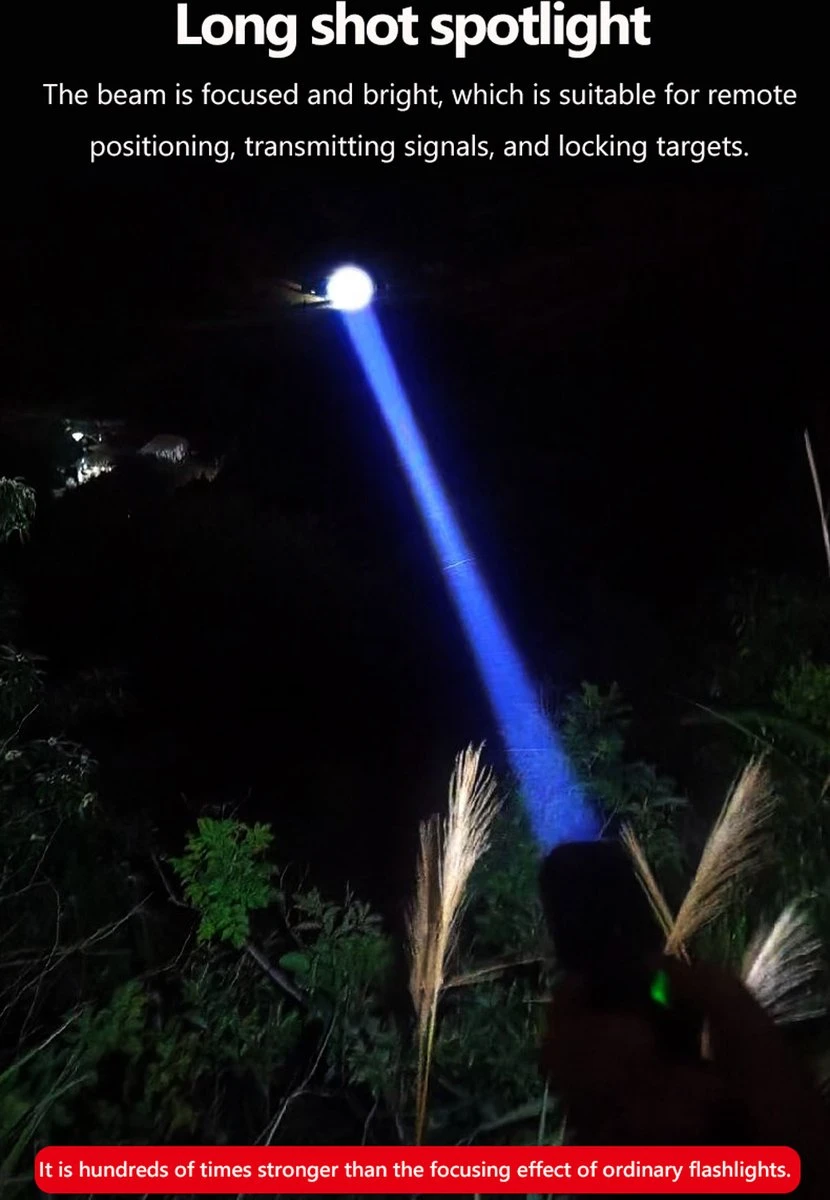 De lamp schijnt tussen de 700 en 1500 meter max. ver, afhankelijk van weer omstandig heden.