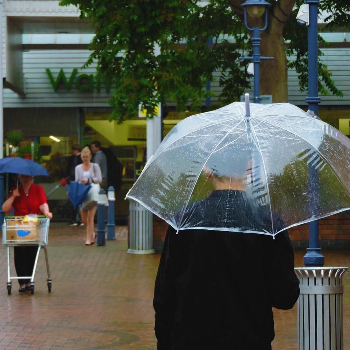 Transparant parapluoppervlak, versterkt de zichtbaarheid van lopen in de regen.