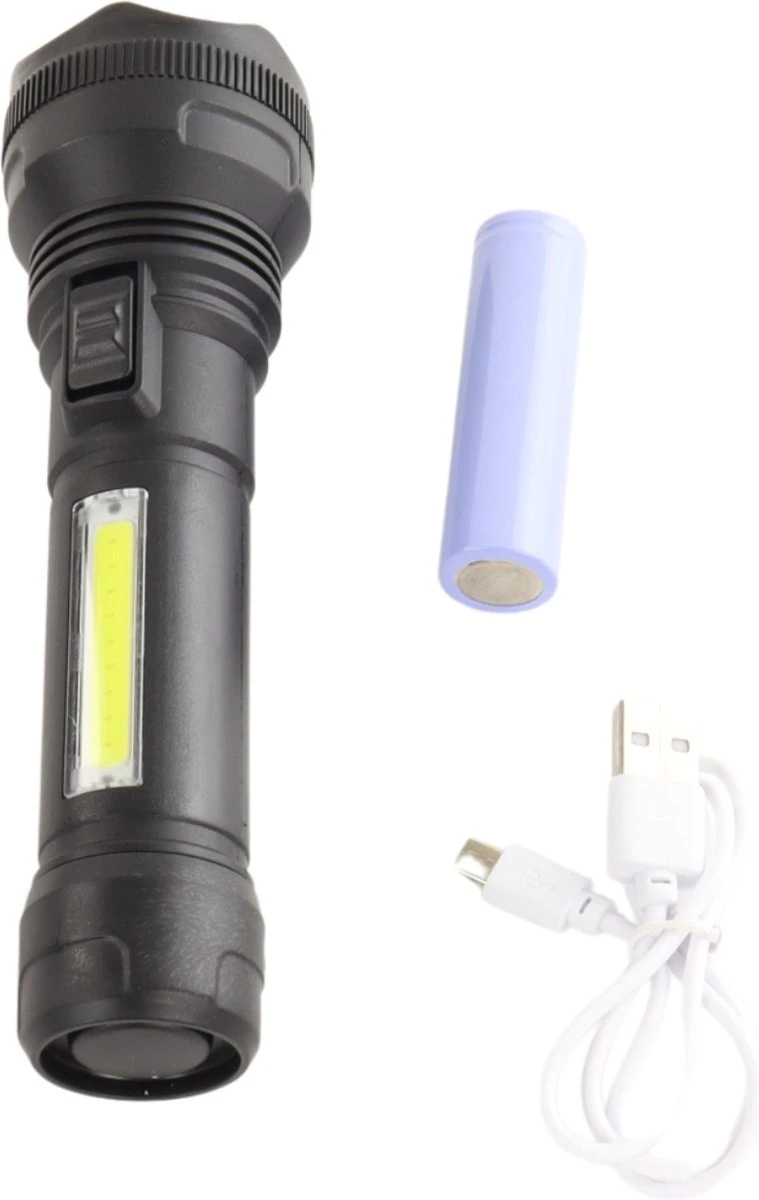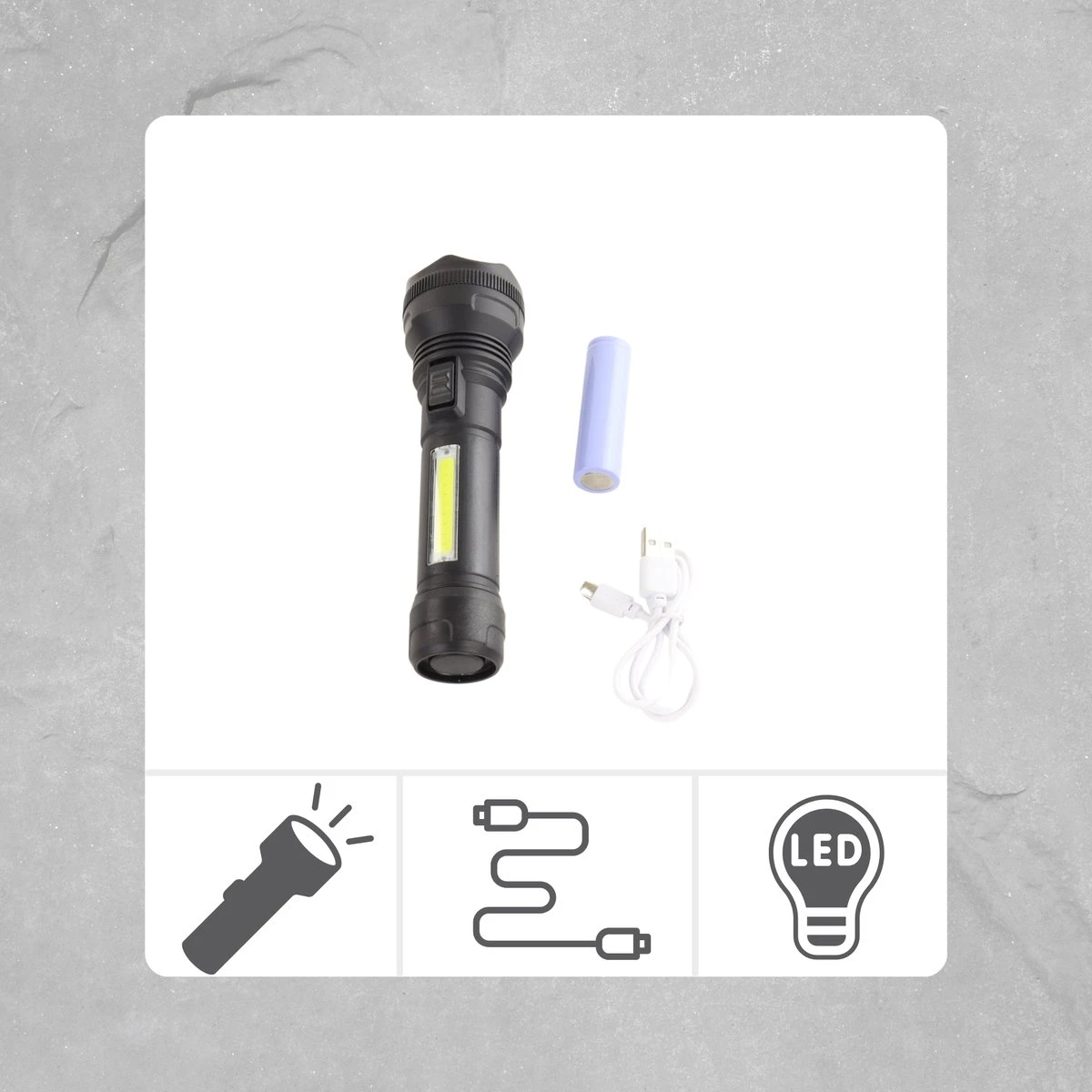 De zaklamp van Orange85 is led oplaadbaar. Bij de zaklamp zit een USB-kabel van 30 cm inbegrepen. De zaklamp beschikt ook over een zijlicht. Hij is zwart van kleur en gemaakt van ABS. De afmeting van de zaklamp is 5x5x16 cm