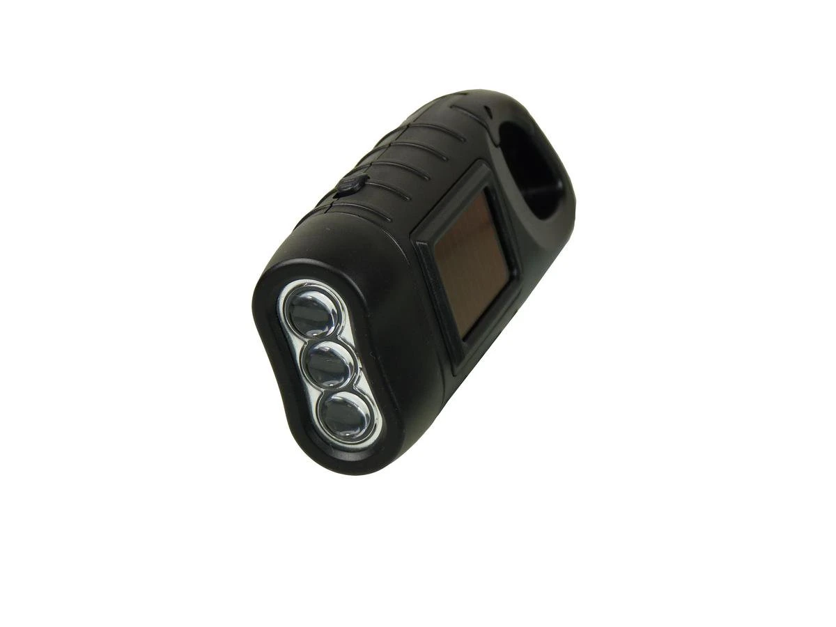 Krachtige 3 LED zaklamp met geintegreerde karabijnhaak voor eenvoudig vervoer aan broekriem, tas etc.