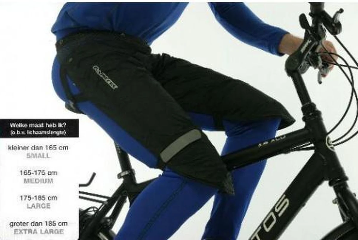 Wat zijn Rainlegs� ? Rainlegs� is de productnaam van een innovatieve vorm van regenkleding voor fietsers en ruiters en andere outdoor sporters. Rainlegs beschermen je benen tegen regen, wind en afkoeling. Het product is geproduceerd uit wind- en waterdicht materiaal (ribstop-polyester met een waterdichte poly urethaan coating 5000 mm. De innovatieve beenbeschermers zijn zodanig ontworpen dat de achterzijde van de benen openblijft zodat er geen condensatie optreedt en de kleding droog blijft. Uitgebreide testen hebben dit bevestigd. De bewegingsvrijheid is uitstekend. Voor de veiligheid zijn beide zijden voorzien van reflecterende strips.