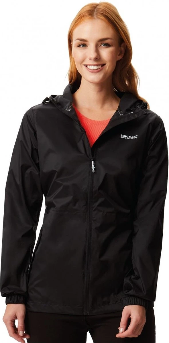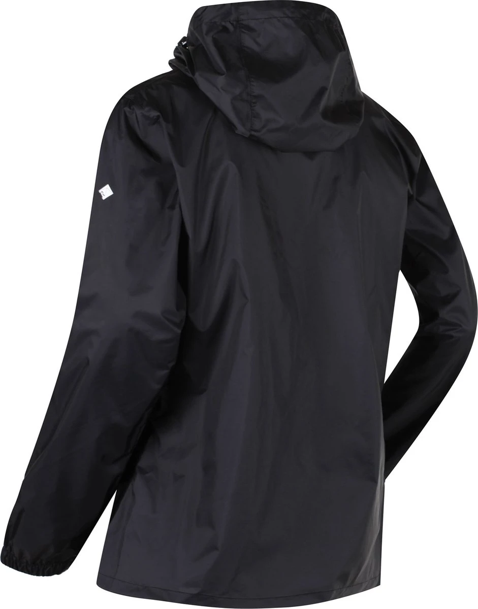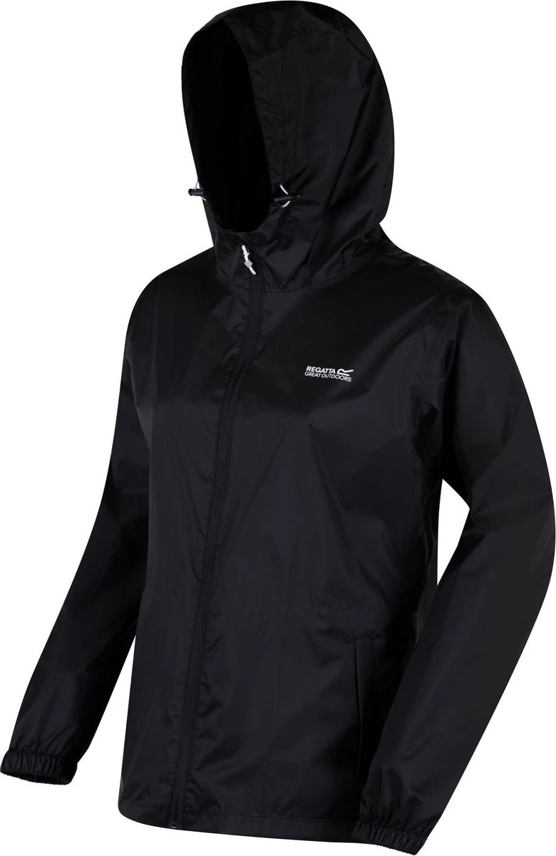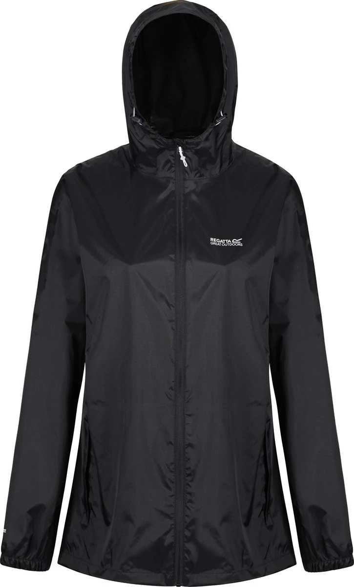 De Pack-It Jacket van Regatta voor dames is gemaakt van waterbestendig en ademend ISOLITE 5000-polyamide en heeft een verstelbare capuchon, een dunne drukknoopsluiting, twee handige zakken en een kleine draagzak. Met Regatta-opdruk op de borst.