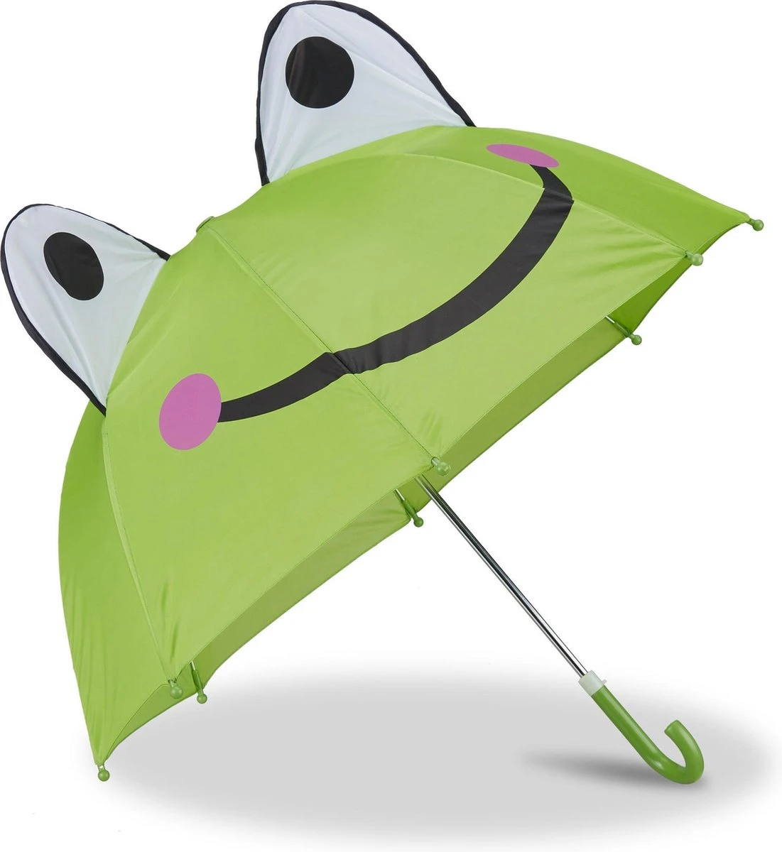 Relaxdays Paraplu Kind Dieren – Kinderparaplu Meisje En Jongen – Regenscherm Kids – Kikker