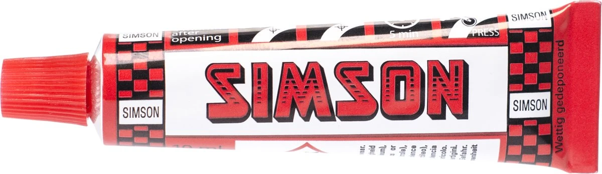 • Knijptube van Simson met lijm speciaal voor het plakken van banden