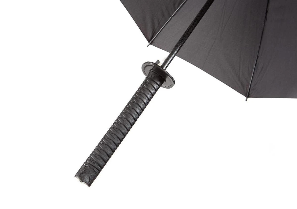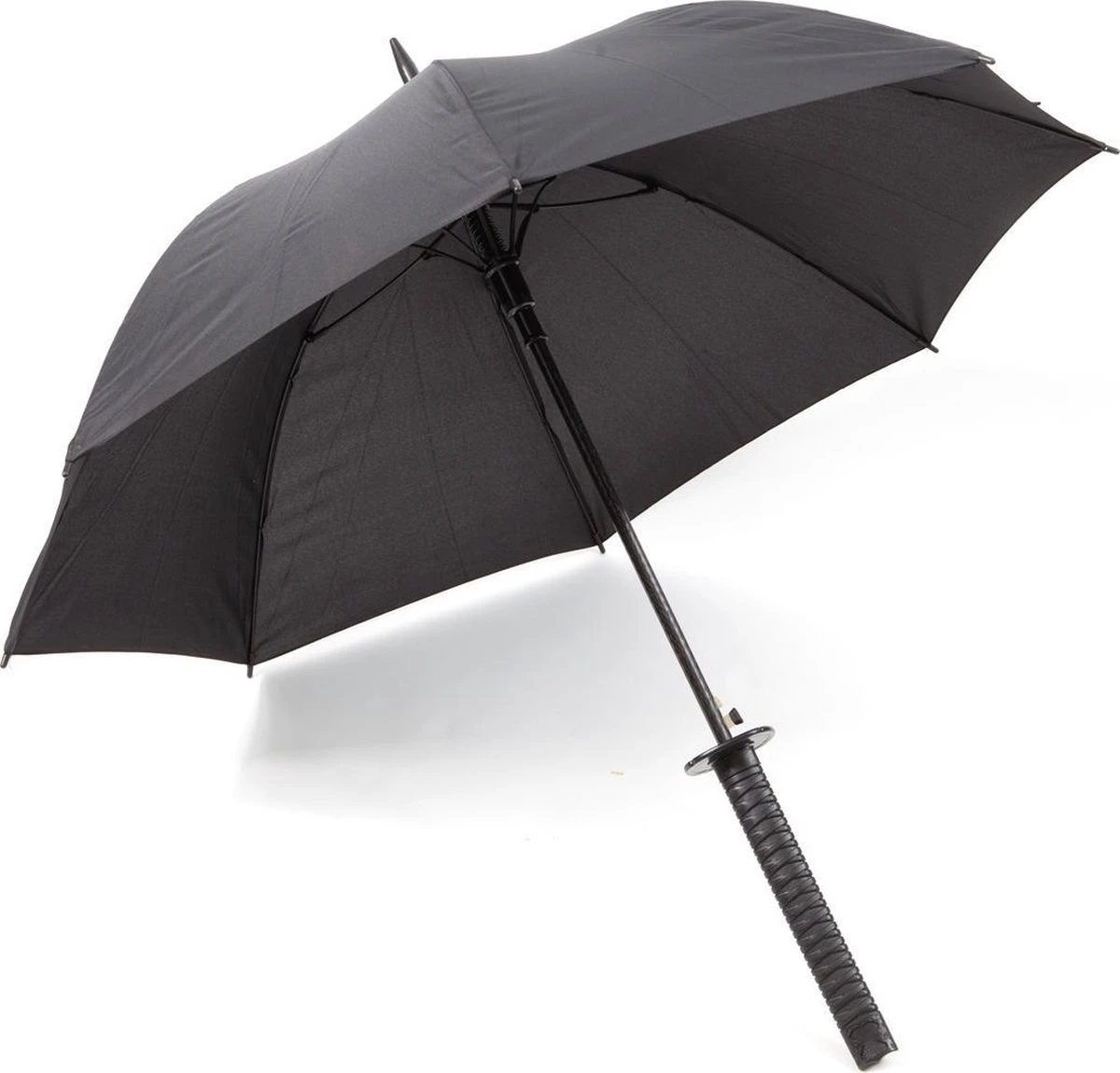 Zodra je de Samurai Paraplu bij je draagt weet een ieder dat je de regen serieus neemt. De paraplu is eenvoudig uit te klappen en meet meer dan een meter in doorsnee. Het handvat van de paraplu is gelijk aan die van een Samurai Zwaard. De Samurai Paraplu is een prachtig item om bij je te dragen op regenachtige dagen met de meegeleverde omhoes met draagband.