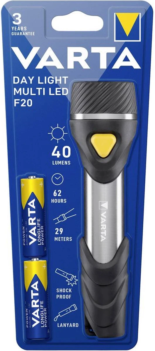 De VARTA Day Light Multi LED-zaklampen zijn ontworpen voor dagelijks gebruik en zijn uitgerust met meerdere LED’s en een schokbestendige driecomponentenbehuizing. Een lanyard is gemakkelijk te hanteren.