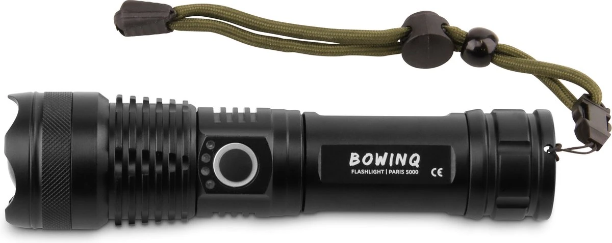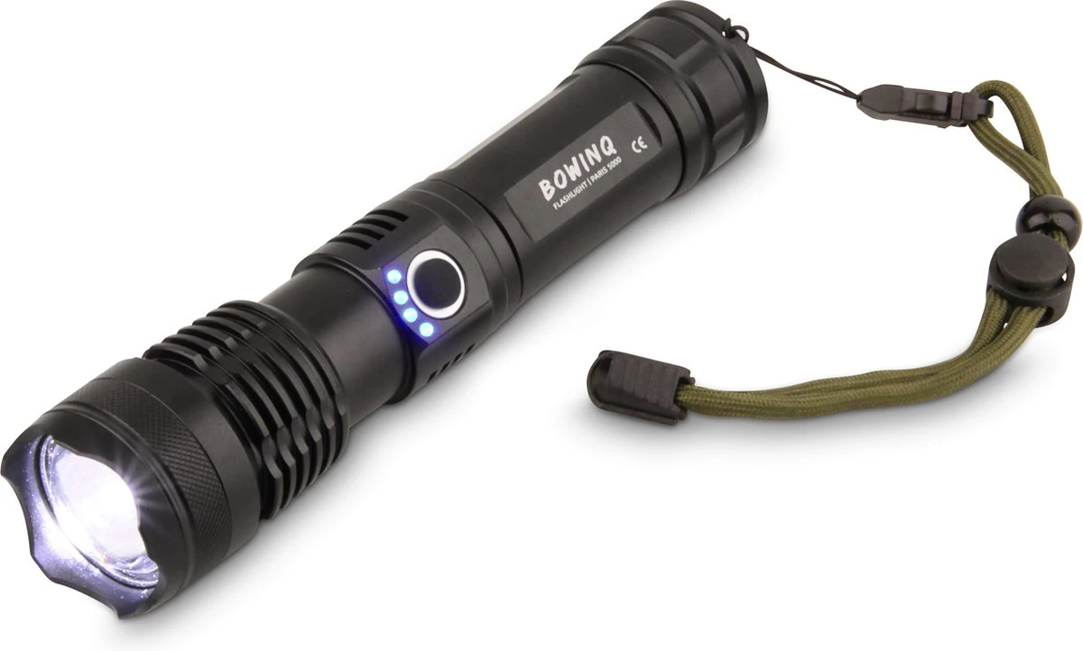 Met deze krachtige en oplaadbare led zaklamp van BOWINQ kun je verder schijnen dan ooit tevoren! Kijk tot een kilometer ver in het diepst van de nacht dankzij heldere led verlichting. De Paris 5000 zaklamp kan iedere situatie en weersomstandigheid aan. Geniet van een maximale gebruiksduur dankzij een zeer krachtige batterij met maarliefst 5000 mAh capaciteit.