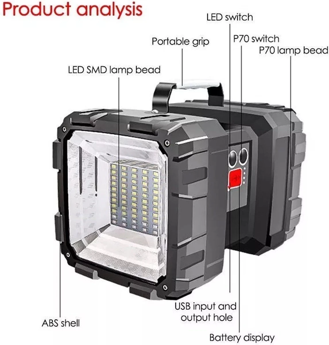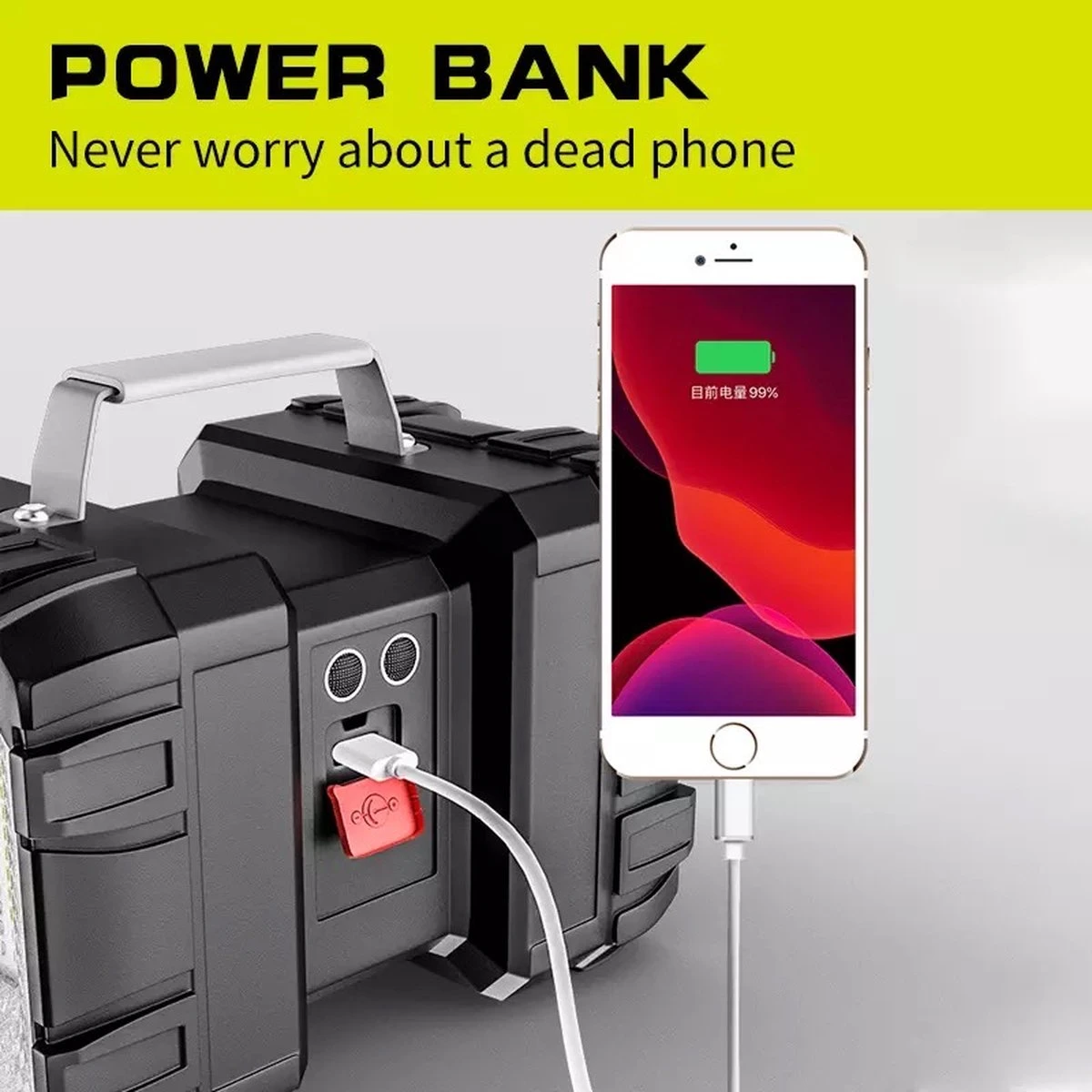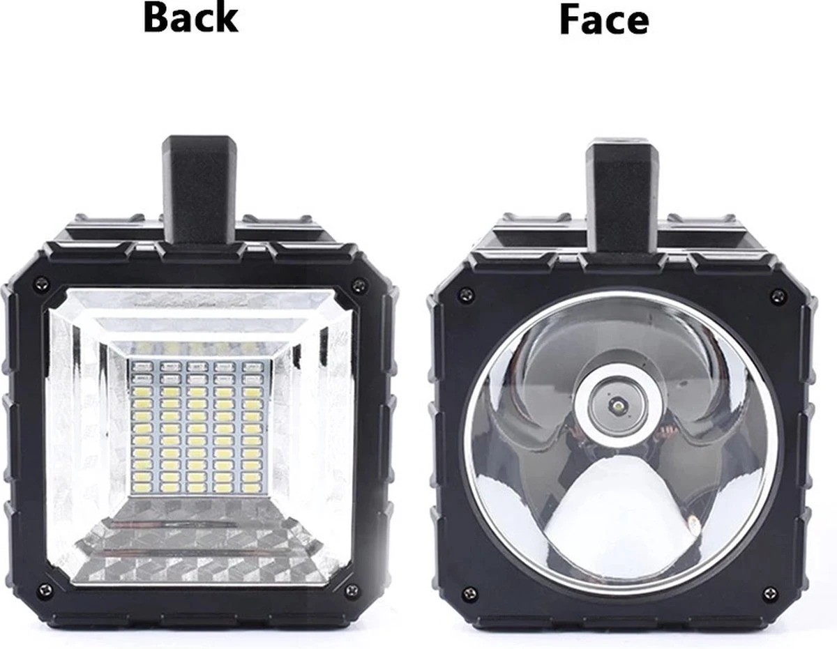 Deze extreem krachtige en licht gewicht schijnwerper wordt rechtstreeks opgeladen met een USB-kabel en heeft 5 lichtstanden en is daarnaast te gebruiken als powerbank met een capaciteit van 10.000ma.