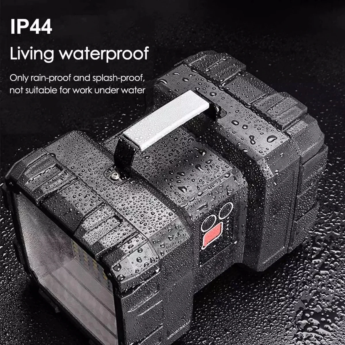 Schijn nooit in ogen, deze schijnwerper is extreem krachtig.